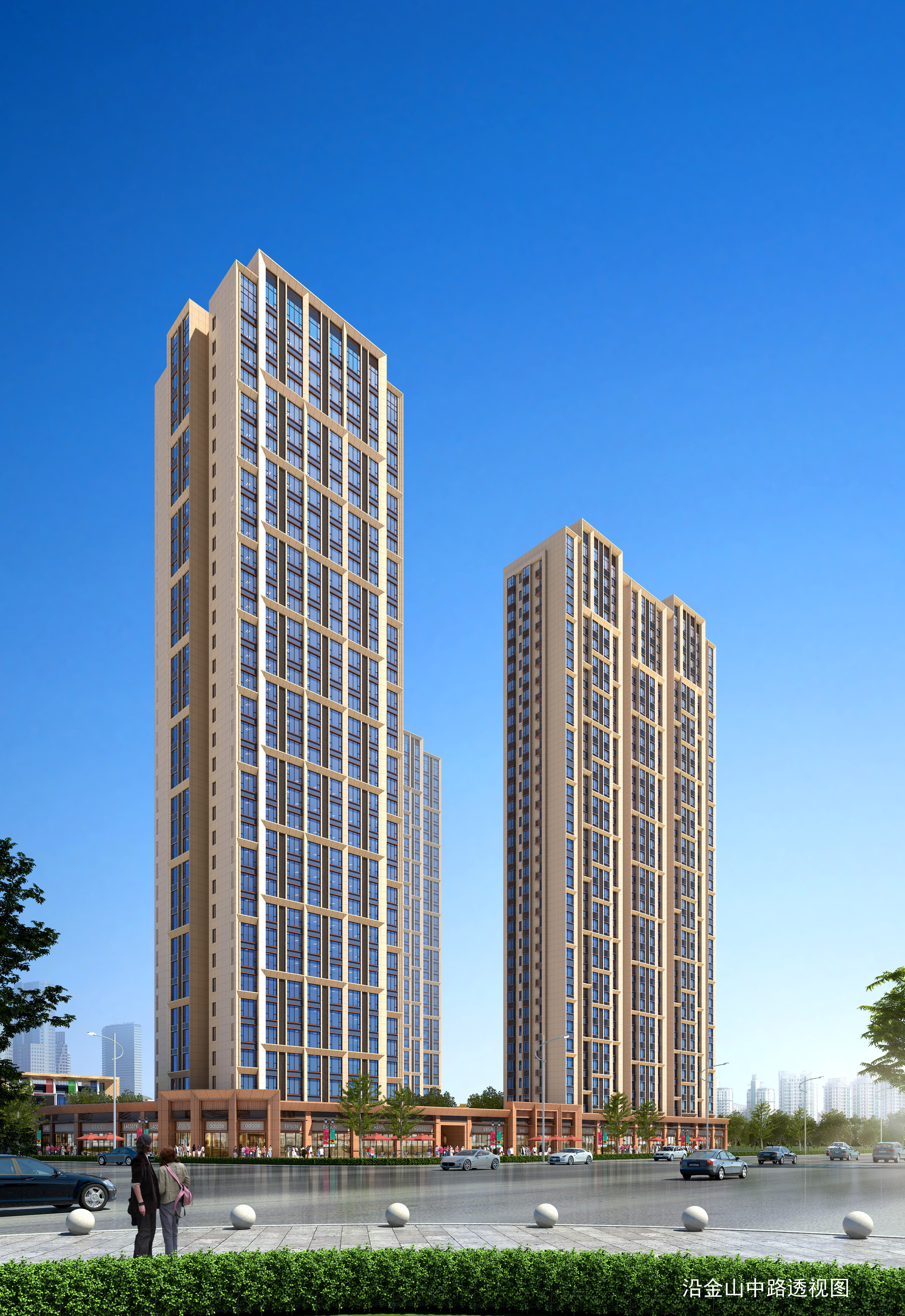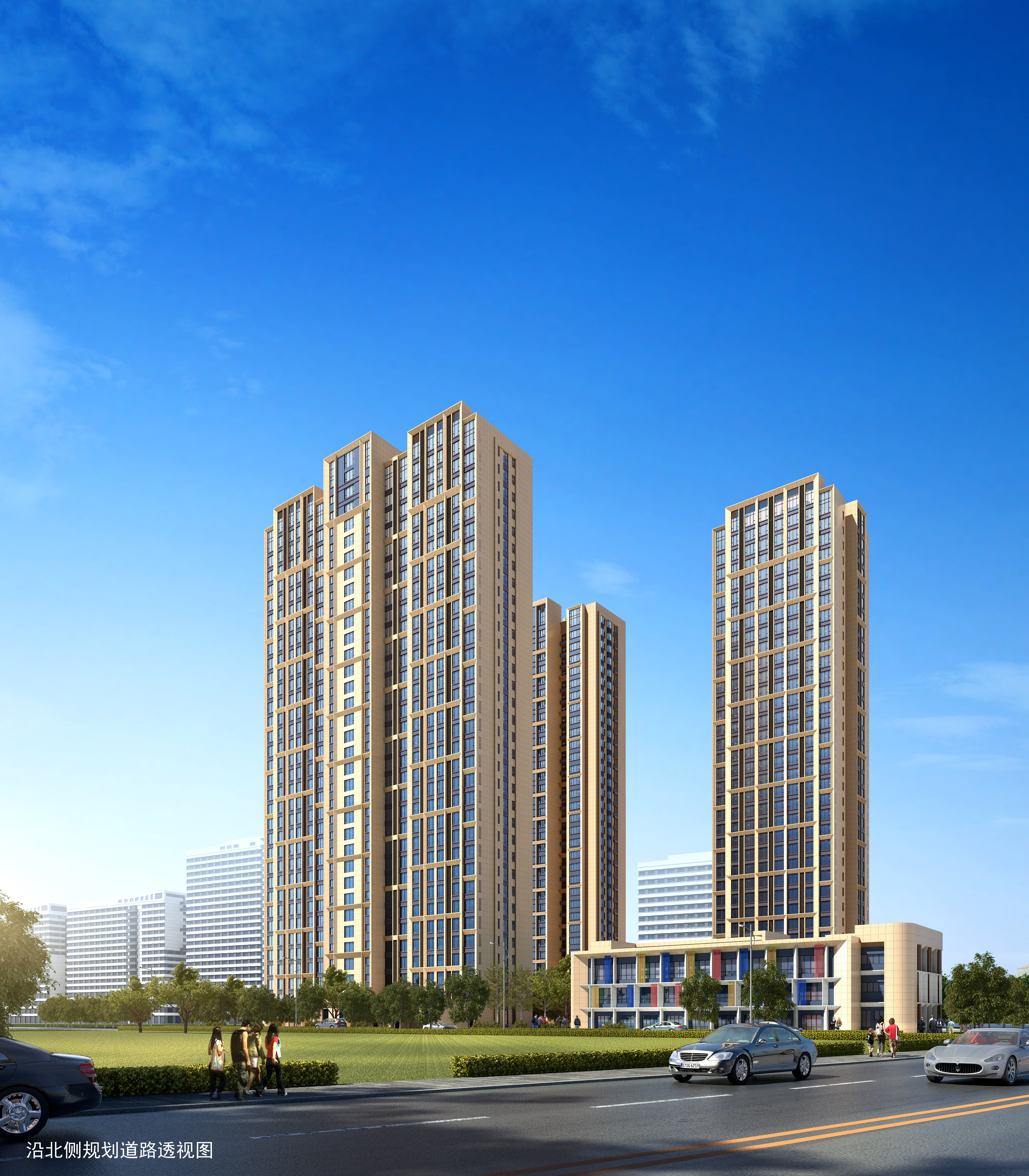 简欧现代风格,保留欧式比例的前提下加入现代元素、现代处理手法。使其新颖时尚。整体建筑色彩采用暖色调,建筑风格强调住宅属性,与周边建筑和谐统一。